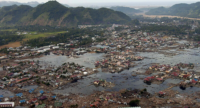 The 2004 Sumatra–Andaman quake reached magnitude 9.1 and ruptured a fault hundreds of miles long. Shaking destroyed much of Banda Aceh, and the tsunami that followed devastated ten countries. Waves nearly 30 meters high struck entire coastlines, and close to 300,000 people died as homes, roads, and vital services collapsed.