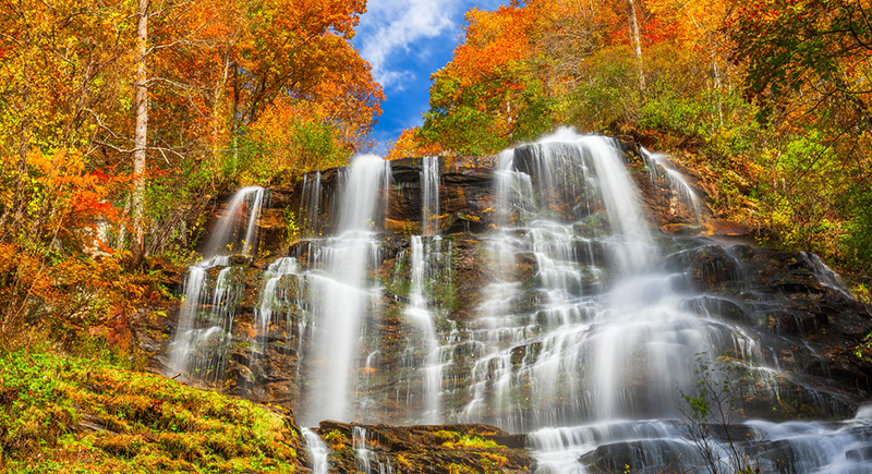 In the north Georgia mountains, Amicalola Falls cascades 729 feet, earning its place as the state’s tallest waterfall. The main trail winds through forest and up more than 600 steps to sweeping overlooks, while a shorter, gentler path at the base offers equally striking views of the lower falls.