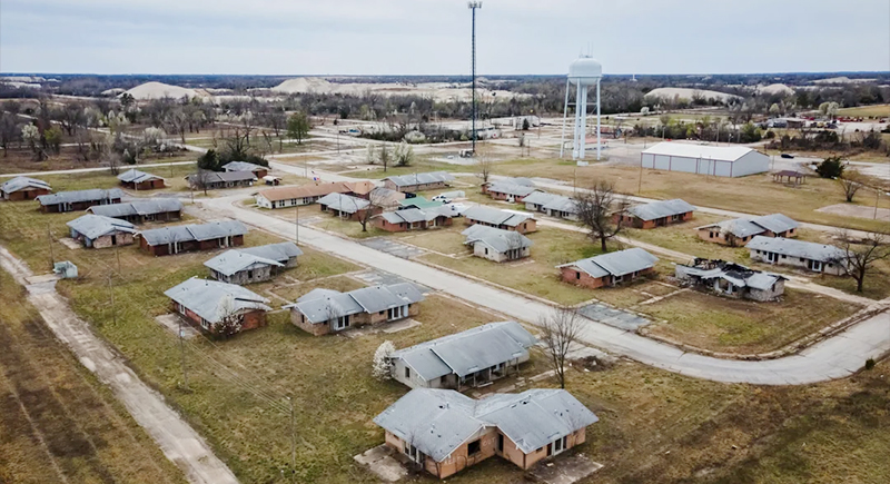 Once a mining hub during World War II, Picher became poisoned by its success. Toxic chat piles (piles of toxic metal-contaminated mine tailings), sinkholes, and contaminated water made the town unlivable. Following a 2008 tornado, the government ordered residents to evacuate. Today, empty streets and abandoned homes sit atop unstable ground.