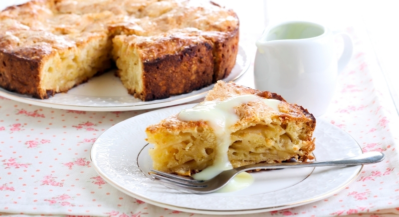 Irish butter influences texture and flavor, as its higher butterfat content gives the cake a richer crumb than standard butter cakes. Many bakeries now serve it warm with custard or cream, though older home versions were simple and relied on apple moisture to keep the cake soft.
