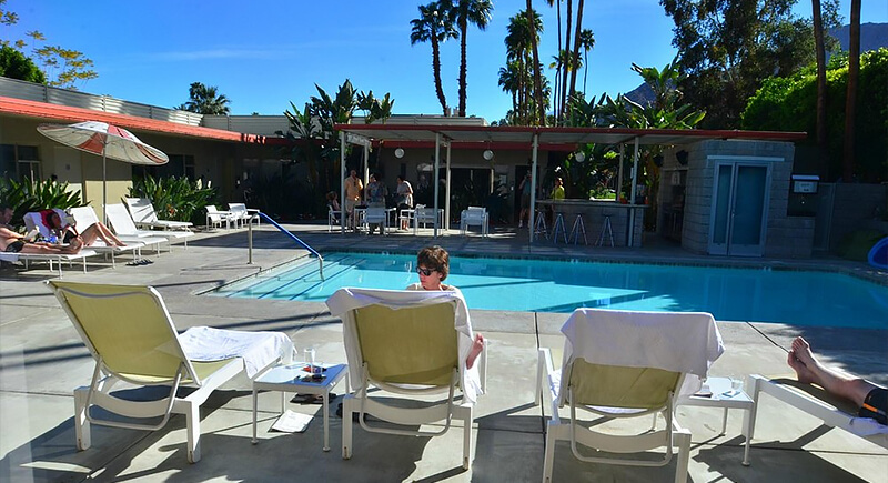 Palm Springs is defined by mid-century architecture, and the Orbit In reflects that design heritage. The boutique motel contains only nine rooms arranged around a central pool courtyard. A careful restoration restored its turquoise doors, retro décor, and vintage barware in the sleeping areas. Outside, evenings bring guests together during a casual cocktail hour beside the pool.