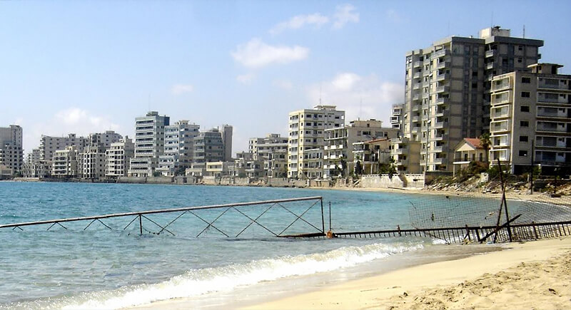 Due to political conflict, Varosha was evacuated in 1974 and remained closed until parts of it reopened in 2020. The former resort district in Famagusta, Cyprus, existed for decades as a sealed-off strip of coastline where hotels and storefronts remained untouched behind fences. While the interiors of buildings are still off-limits, people can walk along beachfront roads and past abandoned hotels filled with sand and sun-bleached furniture.