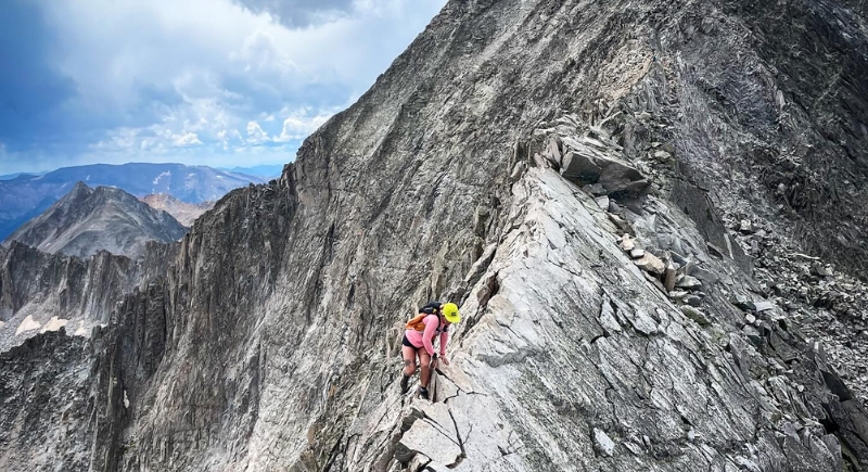 Capitol Peak’s famous Knife Edge isn’t much wider than a balance beam, with 1,000-foot drop-offs on either side. This exposed rock spine has claimed lives, especially when loose rocks give way underfoot.
