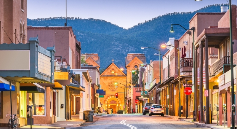 Canyon Road packs nearly 100 galleries into a short, walkable stretch shaded by trees and lined with adobe façades. Most spaces allow casual browsing, so you can move in and out at your own pace. The historic Plaza remains the city’s central gathering point, framed by centuries-old architecture. For a broader view of regional and Indigenous art, the New Mexico Museum of Art and the Museum of Contemporary Native Arts provide focused collections nearby.