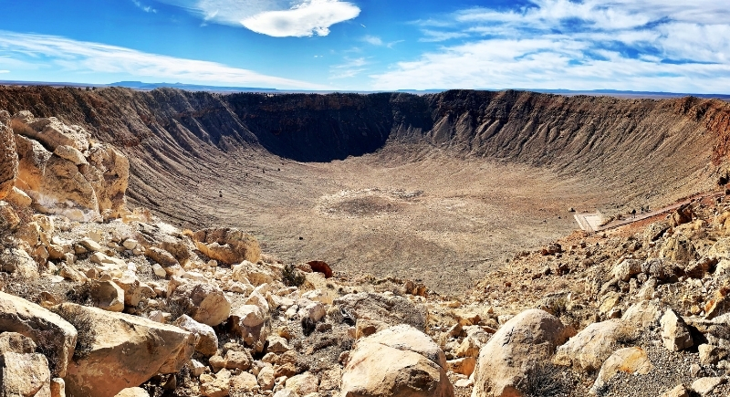 About 50,000 years ago, a nickel-iron meteorite slammed into northern Arizona and created what is now known as Meteor Crater. The impact left a hole nearly 4,000 feet wide and about 560 feet deep, surrounded by a raised rim of shattered rock. Scientists call it Barringer Crater, named after the geologist who proved it came from space. It remains one of the best-preserved impact craters on Earth, situated at an elevation of 5,640 feet above sea level.