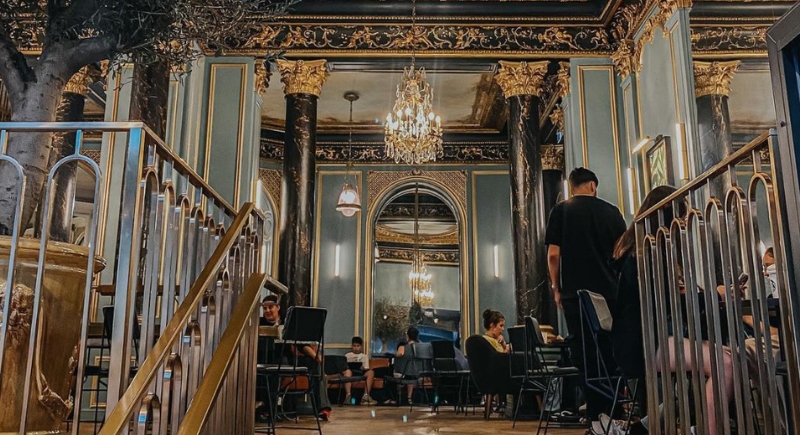 Steps from the Opéra Garnier, this Starbucks occupies a grand 19th-century building along Boulevard des Capucines, a stretch long associated with Parisian theaters and cafés. The interior pays homage to the building’s original character, with ornate ceiling frescoes, sculpted moldings, and gilded details carefully preserved.