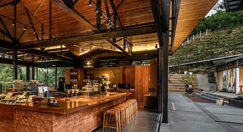 Starbucks runs its only coffee farm at Hacienda Alsacia, using the location for research and small-batch production. Visitors can walk past seedlings and roasting equipment before sitting down with a cup grown just steps away. The café overlooks coffee plants and a nearby waterfall, tying the finished drink directly to its agricultural origins.