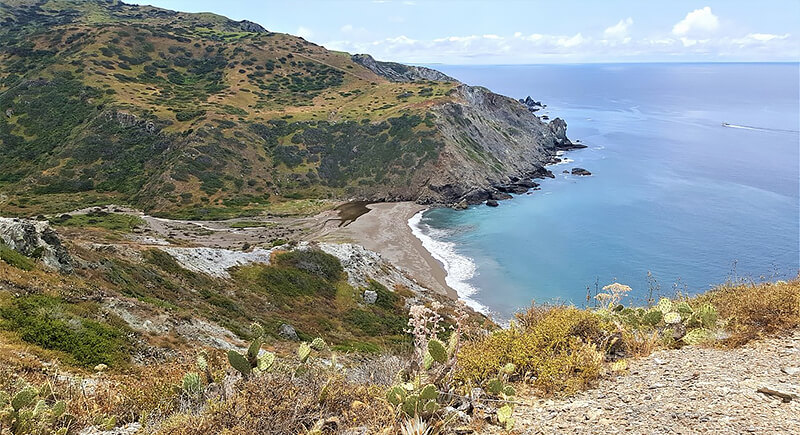 On the windward side of Catalina Island, this beach is low-key thanks to the one-mile hike required after a long drive or tour. The trail cuts through chaparral before dropping down to a wide cove favored by surfers. Conditions vary by season, and you’ll likely share the place with more birds than people.