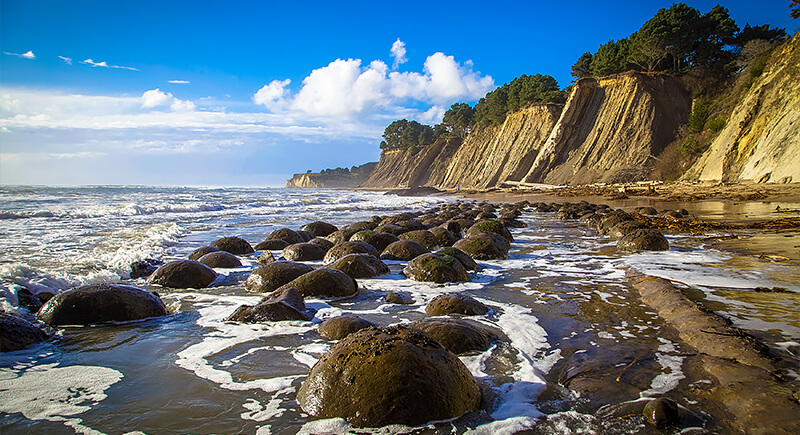 During low tide, Schooner Gulch State Beach becomes a geological oddity. Dozens of round boulders—formed naturally through concretions—emerge like marbles scattered by a giant. Tide timing matters; the spherical rocks vanish beneath the waterline most of the day.