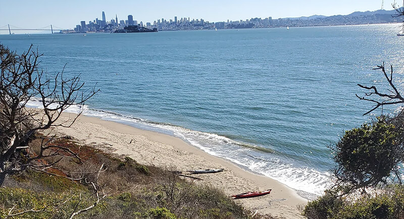 Most Angel Island visitors stay near the ferry dock, which leaves Perles Beach untouched. A roughly 3-mile hike (or bike ride) leads to this west-facing shore with Golden Gate views and hardly any people. Sea otters sometimes drift nearby, and springtime visitors might spot wildflowers along the way.
