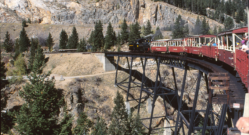 This 19th-century narrow-gauge train offers a moving window into Colorado’s past. The route winds over wooden trestles and along mountain slopes bright with fall color, and open-air cars make every turn feel cinematic.