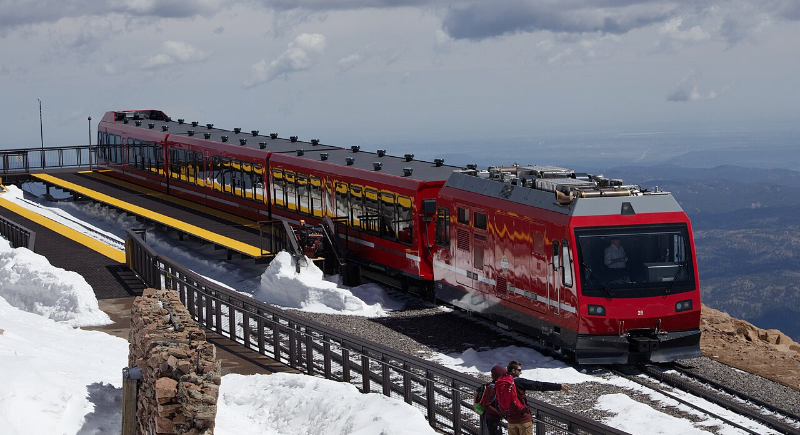 The train clanks and hums its way up 14,115 feet while passing pine forests and stretches of golden tundra until the world opens wide below you. At the summit, the air is crisp, and clouds drift past at eye level. Grab one of the high-altitude donuts from the summit café and linger by the railings.
