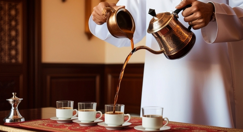 The Bedouin coffee service operates on endless refills unless you signal otherwise. Your host continues pouring tiny cups of cardamom-spiced coffee until you actively communicate you’ve had enough. The signal is to shake or gently tilt your empty cup two or three times before returning it. The tradition is common in countries like Qatar and Saudi Arabia.