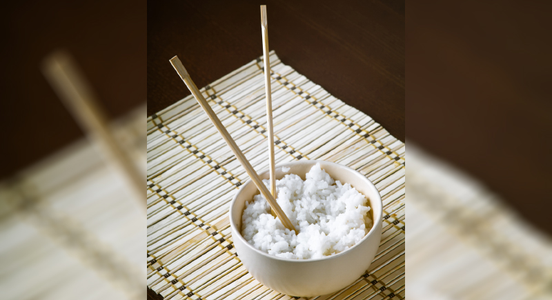 A bowl of rice with chopsticks standing straight up resembles a Japanese funeral offering. The resemblance is uncomfortable for everyone at the table. It’s better to lay chopsticks flat on a rest between bites or balance them across the edge of your bowl. Passing food chopstick-to-chopstick carries the same association with death rituals, so grab a plate when sharing.