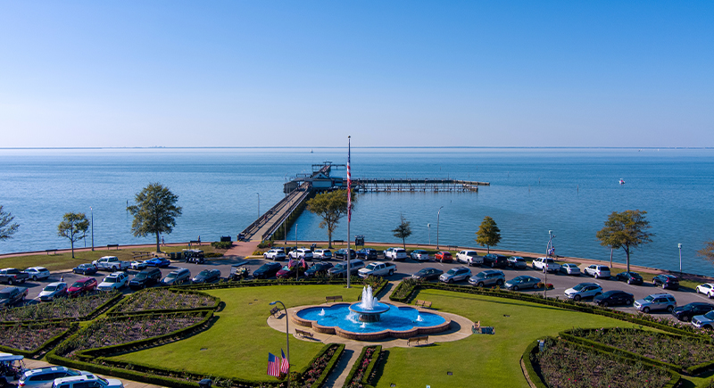 This bayside town offers mild weather, plenty of sunshine, and a downtown that doesn’t overwhelm anyone. In short, Fairhope delivers warmth without requiring a long-haul flight. Cafés and small shops keep the day moving at a comfortable pace, while sunsets over Mobile Bay turn into the evening’s main event.