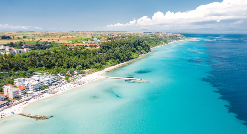 Three peninsulas stretch into clear northern waters, each with a different personality. Kassandra feels lively, Sithonia leans quieter, and Athos remains closed, mainly to casual tourism. Beaches here regularly rank among Greece’s best, with pale sand and shallow water. From Thessaloniki, the drive takes about 2 hours, making day trips easy and prices reasonable.