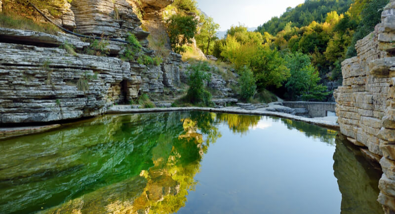 Natural pools near the village of Papingo are filled with cold, clear water from nearby mountain streams. Smooth stone shapes create swimming spots during warmer seasons. The area works well as a base for short hikes and slow afternoons.