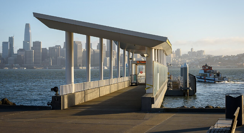 The Treasure Island Ferry Terminal drops passengers off near the former Administration Building, once used as a Pan Am terminal in the 1930s. It currently houses Gold Bar Whiskey Distillery, a place designed to reflect the glamour of early commercial aviation.