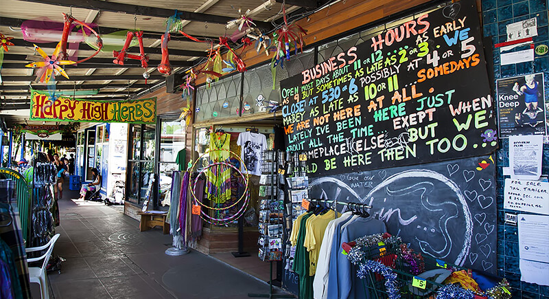 It’s impossible to visit Nimbin and not notice the walls. Everything is painted: storefronts, sidewalks, even the parking signs. The town rewrote its story after the 1973 Aquarius Festival, which brought thousands of students and artists promoting communal living, environmentalism, and creative self-sufficiency. Many settled permanently.