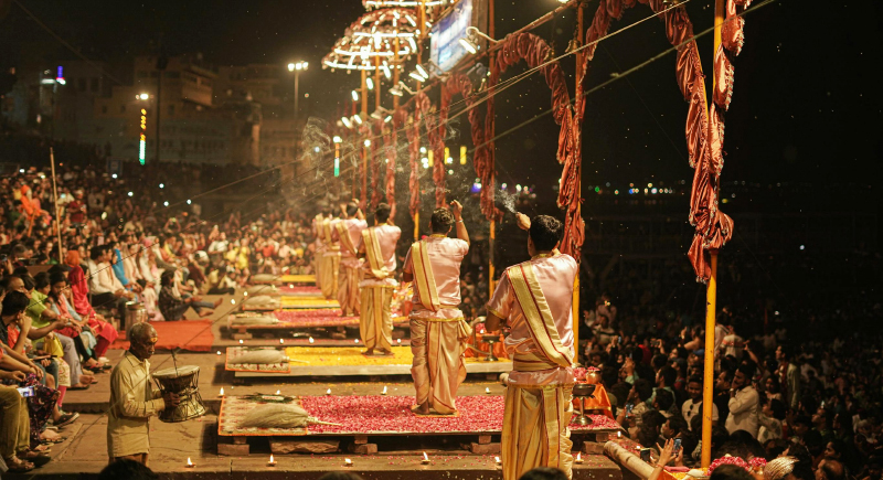 Every evening at Dashashwamedh Ghat, priests perform the Ganga Aarti with lamps, conch shells, and chants that echo across the river. From a boat, visitors can see how the city moves in step with ritual and rhythm. It’s a moment that captures devotion, tradition, and the timeless current of the Ganges.