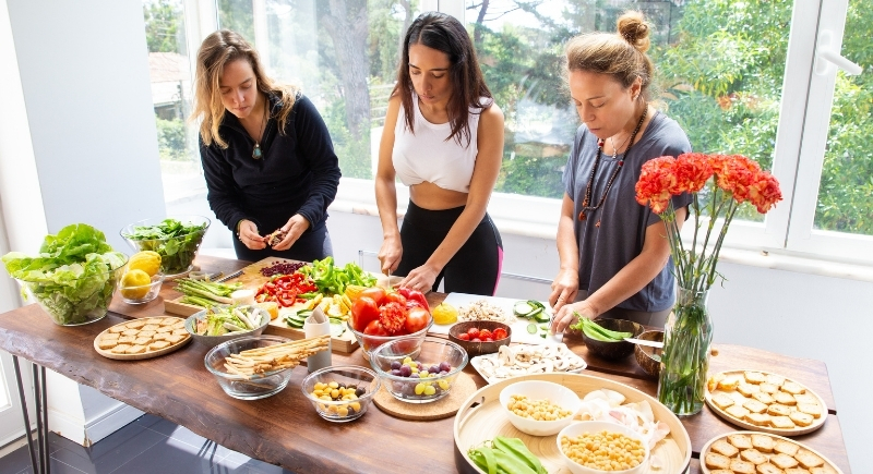 Meals were prepared on-site and shared communally. Menus used local ingredients, including seafood, vegetables, and seasonal produce sourced from nearby regions.