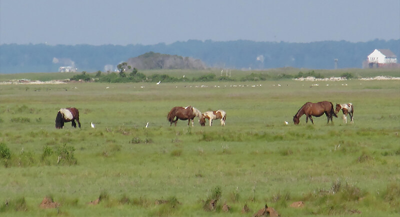 Two separate herds of feral horses inhabit this barrier island spanning Maryland and Virginia. The site is protected by the National Park Service. Visitors observe the horses from designated areas as they move across beaches and dunes, where grazing patterns influence vegetation across the landscape.