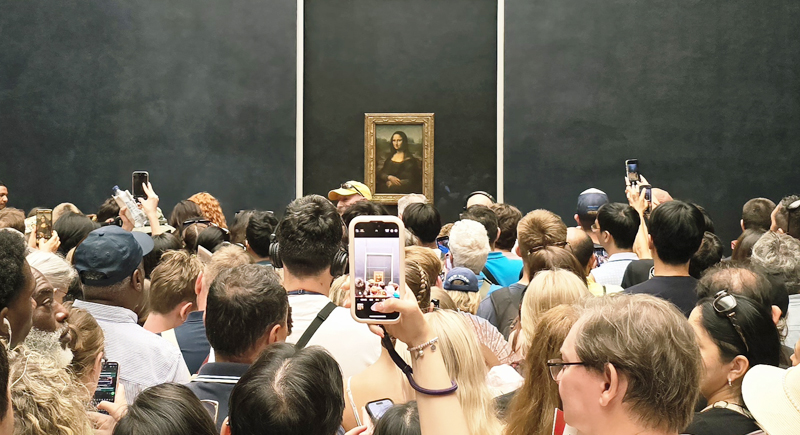 Most visitors cluster in the Denon Wing, specifically around Leonardo da Vinci’s “Mona Lisa.” The painting draws millions of visitors each year, and the crowd around it can stretch deep into the gallery.
