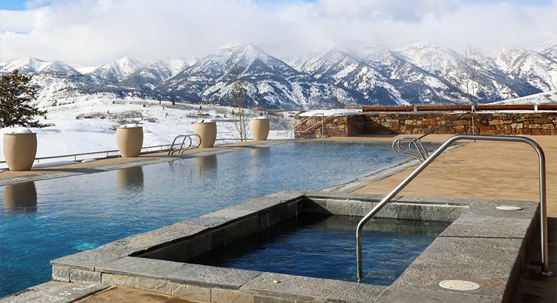 Set high above Jackson Hole, Amangani’s heated outdoor pool feels like a natural hot spring with a luxury twist. Surrounded by snowcapped peaks and wide-open Wyoming skies, the minimalist design blends seamlessly into the landscape. Year-round warmth makes every swim feel indulgent, even in winter.