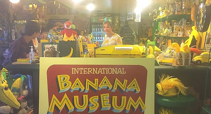 A single fruit dominates every square inch of the International Banana Museum, which contains more than 25,000 banana-related items collected over decades. Furniture, clothing, advertisements, and kitchen tools all follow the same theme. The California museum began as a roadside attraction before expanding indoors.