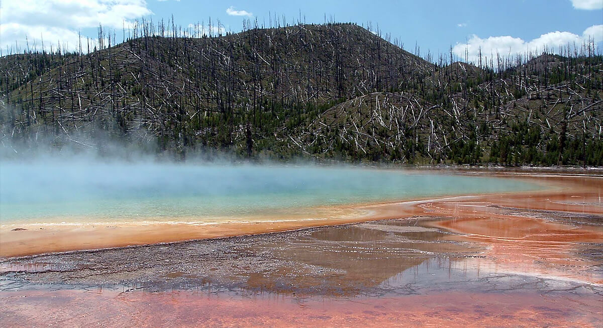 Bright colors around hot springs make these areas look almost unreal, but the ground can be dangerously unstable. A thin crust often covers boiling water beneath the surface. Some pools reach temperatures above 200°F. Stepping off designated paths can break the crust instantly. Serious accidents have occurred in geothermal zones such as Yellowstone and Iceland.