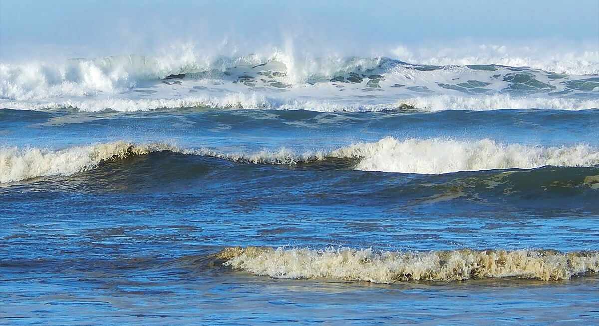 A calm shoreline can be misleading along parts of the Pacific. Sneaker waves form when large swells build far offshore and then arrive suddenly. One wave surges much farther inland than the others and can knock people off their feet. These waves have pulled people into the ocean even when they were standing well above the usual tide line. Incidents happen along coasts in Oregon, northern California, and Iceland.