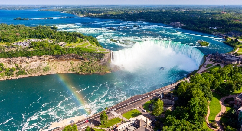 Between the United States and Canada, Niagara Falls moves more water than any other waterfall in North America. The Horseshoe Falls section averages about 168,000 cubic feet per second during peak flow. Its pop culture reputation includes the 1952 movie Niagara, starring Marilyn Monroe.
