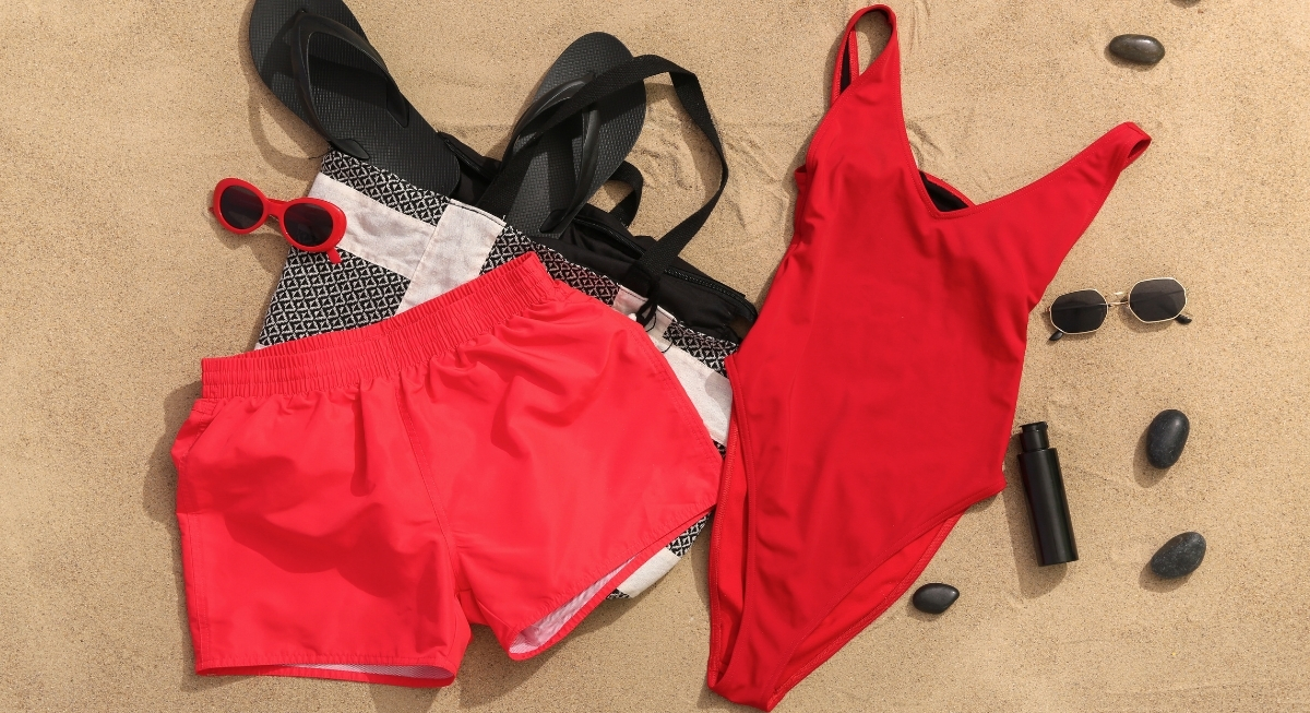 Swim trunks are at the center of the collection, though the lineup stretches beyond that familiar starting point. Women’s swimsuits, beach bags, and caps round out the collection. The pieces work together without feeling repetitive.