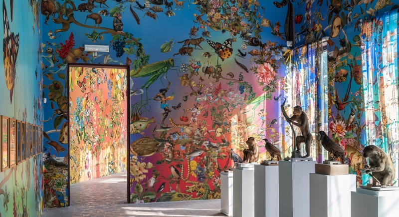 Fallen Fruit created murals and projections based on local plants and pollinators. An outdoor edible garden connects to the indoor artwork. Visitors walk through color-soaked rooms that highlight food systems and community sharing. The exhibit changes with the seasons. Workshops and talks expand on-site programming during 2026.