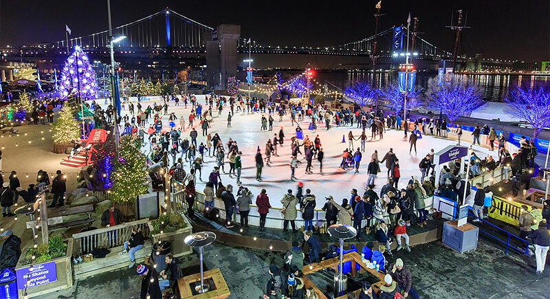 Right in front of City Hall, Dilworth Park turns into a busy winter hub. The ice rink sits at the center, surrounded by stalls selling local crafts and food. Lights run through the garden, and the Rothman Cabin keeps people stopping in for hot chocolate or cider.