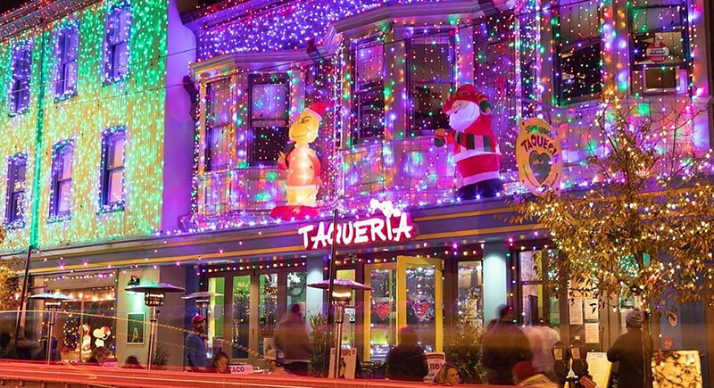 Bars around the city adapt to the season with themed decorations and festive drinks. Tinsel in Midtown Village is a favorite, serving cocktails in ornaments and snow globes. Over in Manayunk, Taqueria Amor’s Grinch theme includes green drinks and glowing décor.