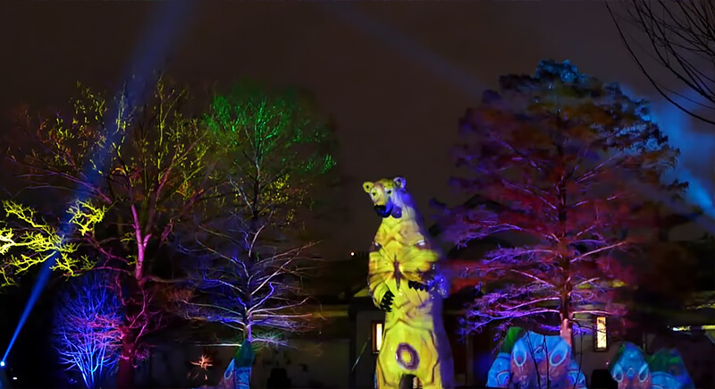 The Philadelphia Zoo’s LumiNature event is a nighttime light show. Visitors walk past illuminated animal sculptures, glowing jellyfish, and even a Christmas tree built from bright flamingos. Food stalls and hot drinks are also available. The event runs for several weeks and requires timed-entry tickets.