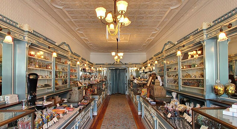 Shane Confectionery has operated in Old City since 1876. During the holidays, the shop highlights Clear Toy Candy, a glasslike treat poured into molds shaped like Santas and other figures. The tradition is distinct to Philadelphia and gives visitors a break from the usual store-bought sweets.