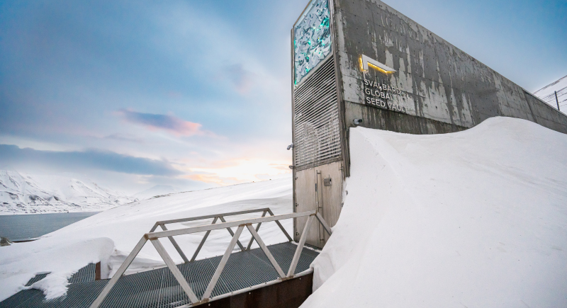 Engineers carved the Svalbard Global Seed Vault about 100 meters inside a mountain on Spitsbergen Island. Norway built the facility to save global crop diversity in case of a large-scale crisis. Today, the vault stores millions of seed samples in sealed containers at extremely low temperatures in order to slow genetic aging.