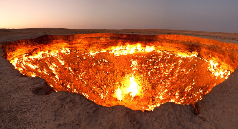 This burning crater in the middle of Turkmenistan’s Karakum Desert has been on fire since 1971. It formed when a Soviet drilling operation accidentally collapsed into a pocket of natural gas. To prevent toxic emissions, geologists set it on fire, expecting the flames to vanish. They never did. Now, the 230-foot-wide pit glows with constant fire.