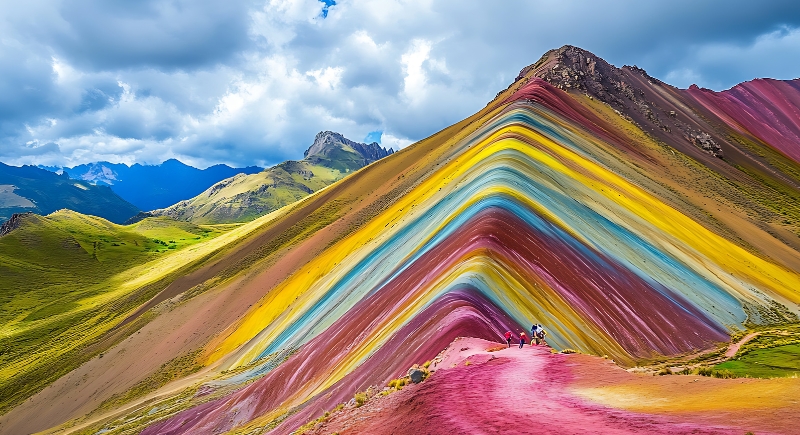 Vinicunca, better known as Rainbow Mountain, is located high in the Andes at over 17,000 feet. The mountain’s bands of reds, greens, yellows, and blues come from centuries of mineral deposits exposed by melting snow. Though it only became widely known in 2015, it’s now a popular trekking destination.