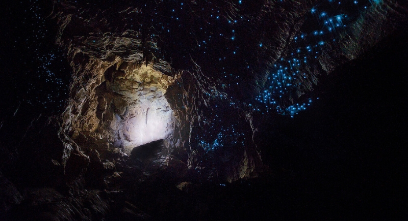 These limestone caves glow with thousands of tiny lights. The glow comes from Arachnocampa luminosa, a glowworm species found only in New Zealand. The insects produce a blue-green light to attract prey. Boat tours float through the caves, with the glowing ceilings giving off an effect that feels like deep space.