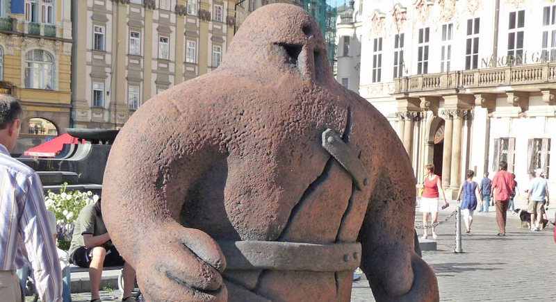At the base of Petřín Hill stands the Memorial to the Victims of Communism. It shows a line of bronze human forms descending stairs, each figure more broken than the last. One is cracked, another has missing limbs, until only fragments remain. The figures speak clearly of state violence.