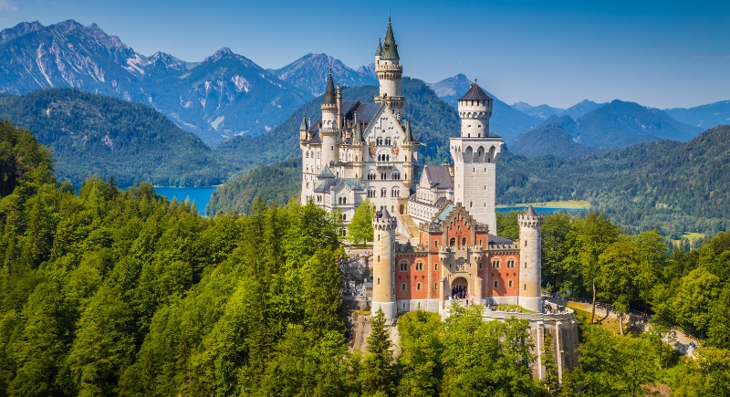 The castle in Sleeping Beauty is based on Neuschwanstein Castle in Germany. The Romanesque Revival structure was built in the 19th century and is located high above the Bavarian countryside. Walt Disney visited the castle before Disneyland opened, and its influence is still evident in both the film and the theme park icon.