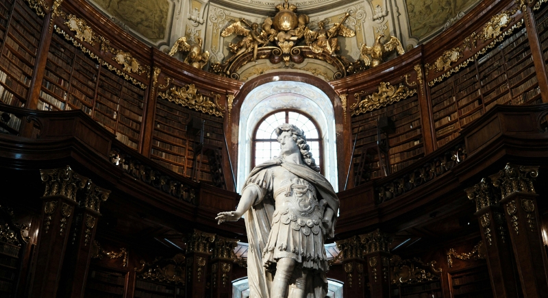 The moment you enter, you’re kept several steps away from the shelves by design. Rope barriers, marked paths, and staff direction make it clear this room isn’t for browsing. The hall was built in the 1720s for the Habsburg court and holds around 200,000 historic volumes. Tickets limit traffic because light, humidity, and vibration damage both books and the ceiling.