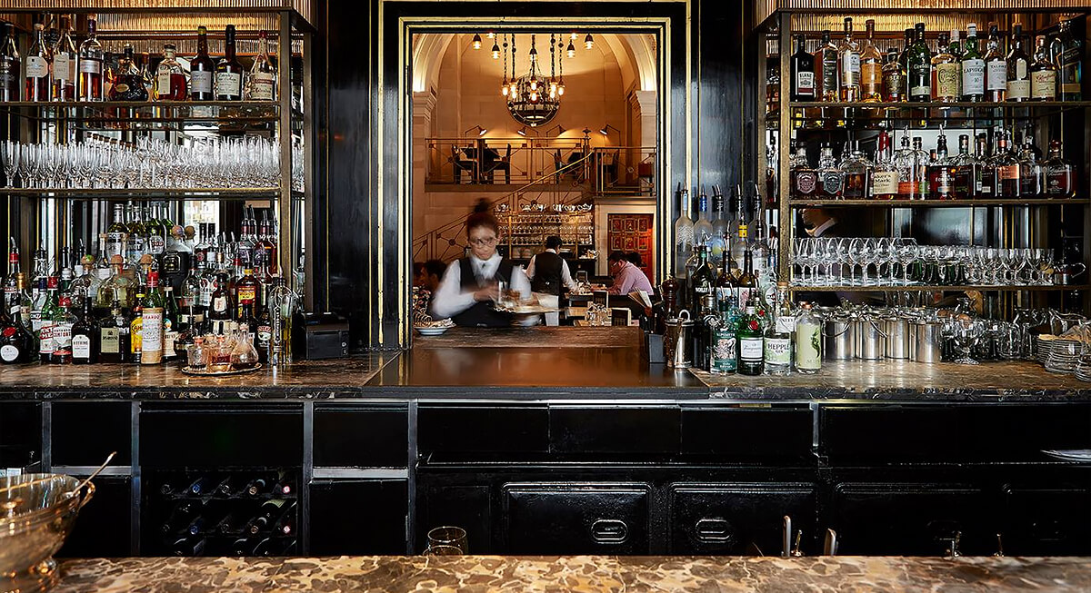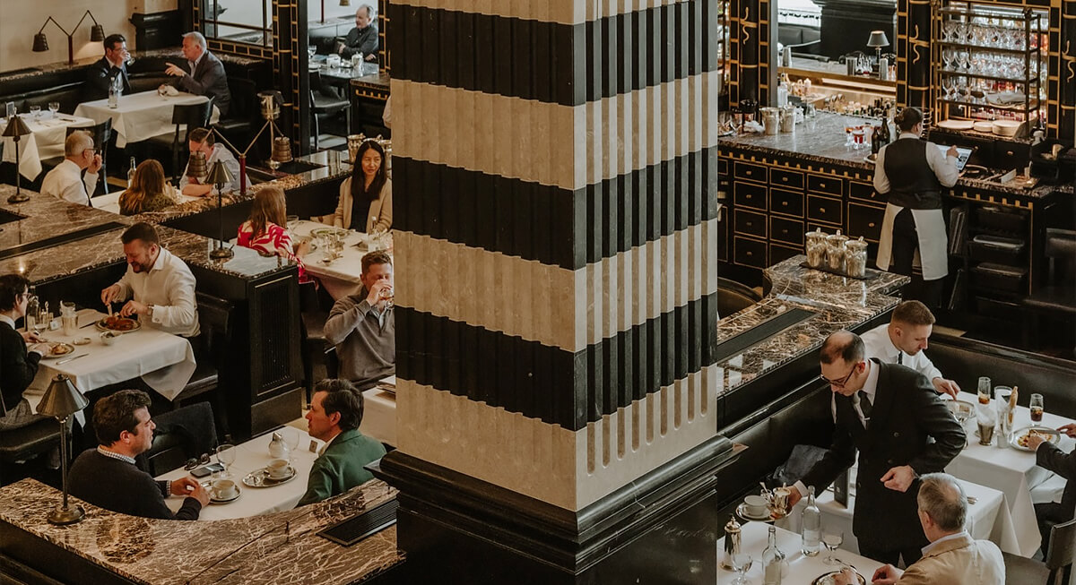 The London restaurant’s interiors are often described through its Art Deco details, though the New York property avoids copying that look directly. Instead, the design draws on similar principles such as symmetry and rich textures. The approach keeps a connection to the original while making room for a more restrained, modern interpretation.