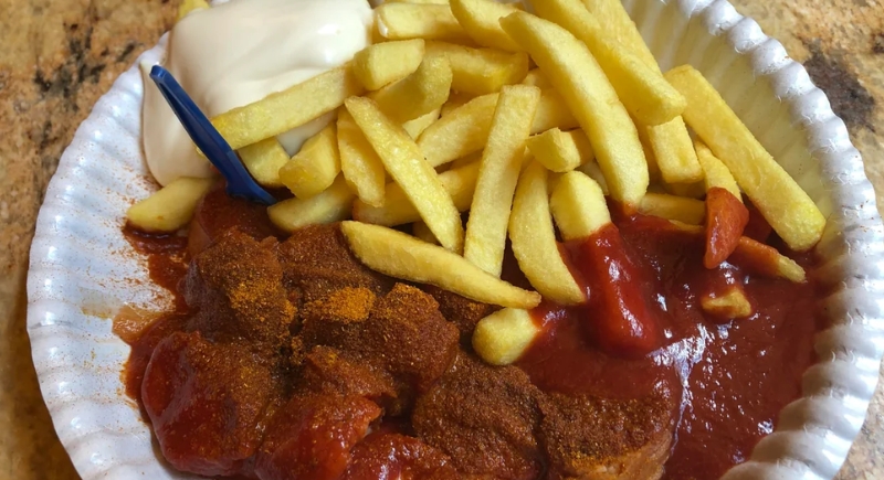 Currywurst became a German street food icon after World War II, when ketchup, curry powder, and sausage first came together in Berlin. Street stands and fast-food shops still serve it with fries and mayo. The dish is so culturally important that Berlin even has a Currywurst Museum.