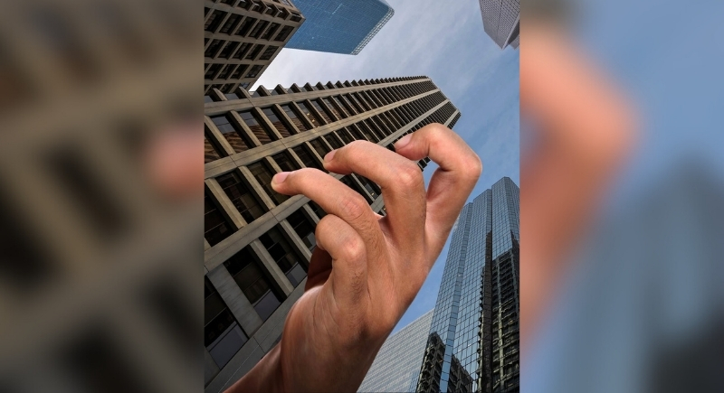 You don’t see a building first. You see a guitar neck mid-song. The window rows seem like frets, and the hand placement seems like someone holding a chord instead of grabbing concrete and steel. It works because nothing is forced. The low shooting angle shrinks the tower just enough to sell the illusion.