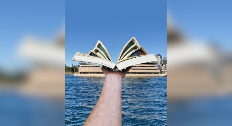 The Opera House looks like folded paper. Suíssas’s artist eye really worked by matching the page edges to the sails. It’s a travel photo and a visual pun at the same time, exactly the kind of combo the internet loves.