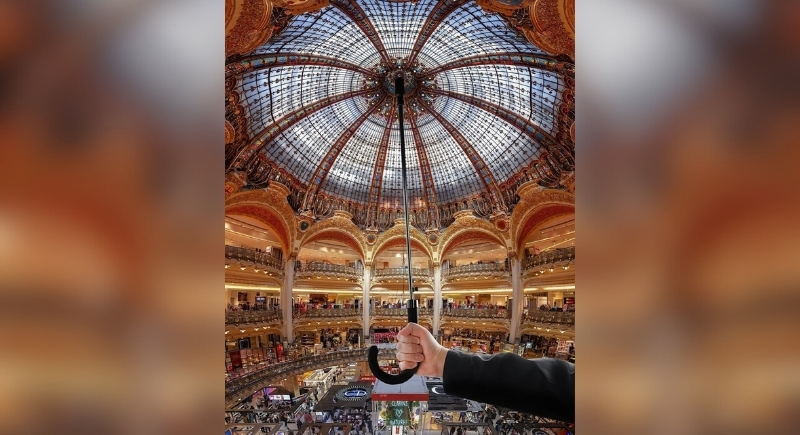 The dome’s repeating lines already look like umbrella ribs, so once the handle shows up, your brain just goes along with it. The clean center framing is doing Olympic-level work here, because if that alignment drifts even a little, the illusion falls apart instantly.